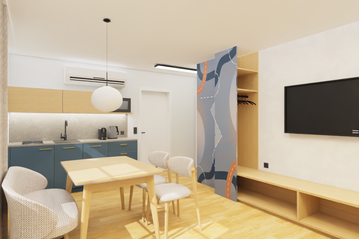 Apartmány nabízejí prostor pro až čtyři osoby. Díky rozkládací pohovce jsou ideální pro páry, přátele či rodiny.